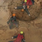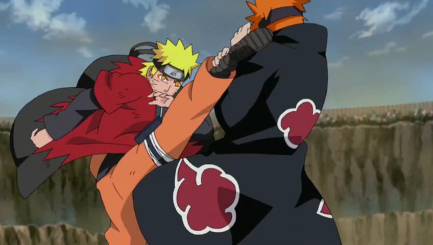 Pain ne approfitta immediatamente e attacca il biondo ninja della Foglia. Ma Naruto ha un piano: evocare una sua copia dal monte Myoboku, che immagazzinava il chakra naturale e ritornare così in Modalità Eremitica!