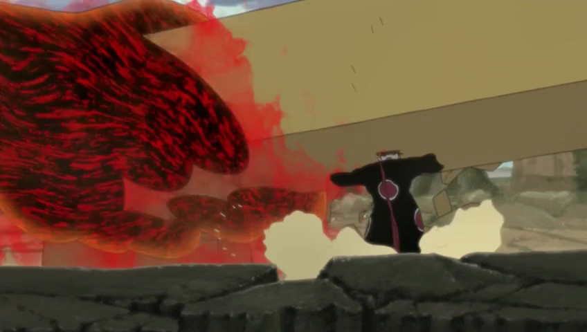 Pain nel frattempo si appresta a sfidare nuovamente Naruto, ricoperto ora dal manto della volpe e avente 4 code, come contro Orochimaru! Ma la rabbia del ninja della Foglia è incontenibile: compaiono altre 2 code!