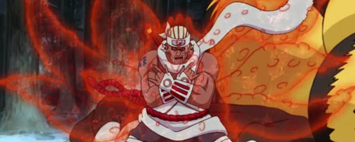 Riassunto: Ao è sulle tracce di Danzou e scagnozzi, che nel trambusto generato da Sasuke e Madara, ne ha approfittato per scappare. Nel mentre Killer Bee è alle prese con Kisame Hoshigaki, il temutissimo Bijuu senza coda dell’Akatsuki, ex compagno di formazione di Itachi. Anche se i nemici sembrano essere due, in realtà: a quanto pare la spada Samehada ha una sua identità/volontà. Inoltre l’arma del nukenin ha la capacità di risucchiare quantità immani di chakra dagli avversari. Ben presto Bee si ritrova costretto ad utilizzare il chakra del suo Bijuu, l’ottocode.
