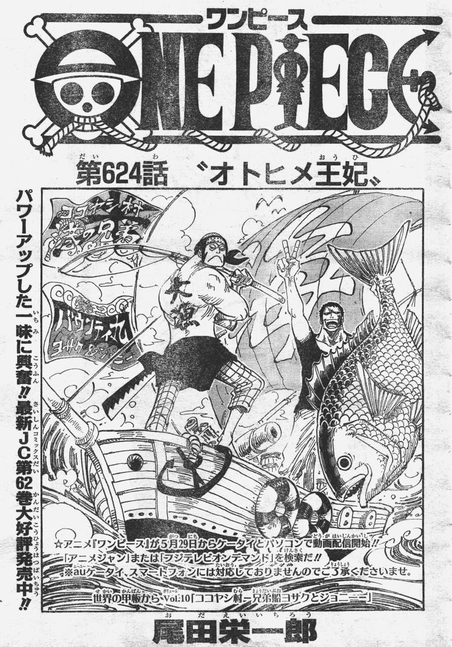 One Piece 624 – La Regina Otohime. Dopo averci mostrato la “faccia nera” della medaglia, era ovvio che Oda ci mostrasse quella “bianca”: ecco quindi le reazioni scatenate dalla morte dell’eroe degli Uomini Pesce e la presa di coscienza della Regina degli stessi, che vede andare piano piano in frantumi il suo sogno di rendere esseri umani e uomini pesce uniti sotto lo stesso cielo. Le parole usate da Oda suonano molto forti: pur di aprire gli occhi al suo popolo la regina non esita a mettere tutti di fronte alla loro “ipocrisia”, alle loro paure, alla loro mancanza di forza nel decidere come e con chi schierarsi. Mentre in Naruto assistiamo ad un dialogo “faccia a faccia” tra i due personaggi, qui invece ci sono due “monologhi” che, ciononostante, sembrano declamati uno in risposta dell’altro: ecco che alla forza d’animo e alla disperazione delle parole di Otohime si contrappone la “calma rabbia” di Jinbe, nuovo capo dei Pirati del Sole, suo malgrado costretto a prendere decisioni che, senza saperlo, potrebbero mandare a segno il progetto della regina. Ma in tutto questo “scambio muto” di battute, il finale vince su ogni cosa: il prossimo capitolo riuscirà, secondo voi, a rendermi ancora più odiati i Tenryuubito? Io dico di sì! Chiudo con una piccola nota di traduzione sul titolo. Non so se ci avete fatto caso, ma il nome della regina degli uomini pesce significa, letteralmente, “giovane principessa”, riferendosi, in una discendenza nobiliare, alla minore tra le possibili aspiranti al trono. Il titolo del capitolo, che completamente italianizzato potrebbe suonare allora “La Regina Piccola Principessa”, che, secondo me, ben sottolinea, nonostante il ruolo ricoperto, la mancanza di “presa” che la voce di Otohime fa sui suoi sudditi e la sua totale “debolezza” di fronte agli eventi che la vedono coinvolta.