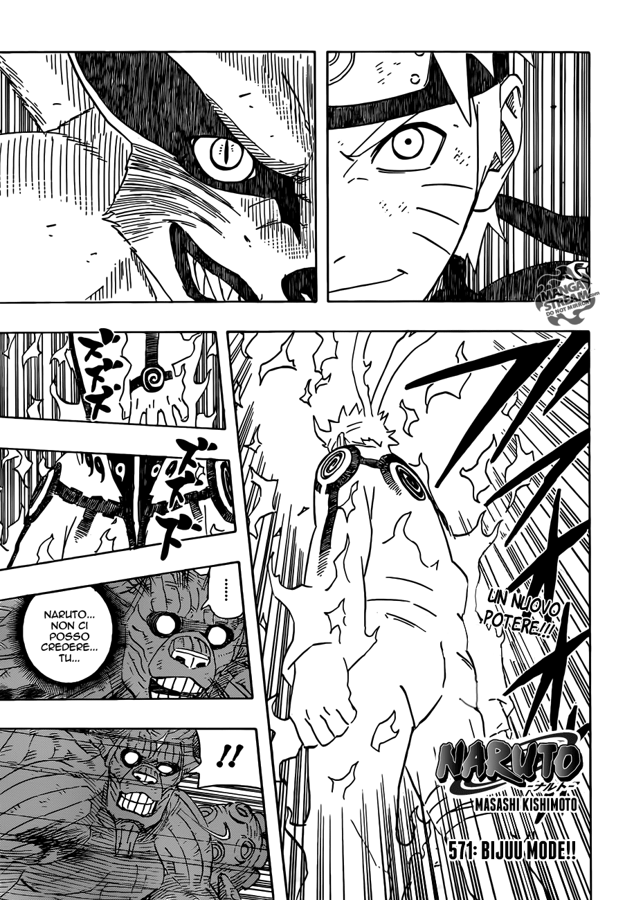 Naruto 571 – Modalità Bijuu! E finalmente vediamo Naruto in tutta la sua piena potenza (anche se Kurama avverte che è meglio non esagerare, per la prima volta!). Per l’occasione, Kishimoto lascia il posto ad un suo “maestro”: non mi dite che il capitolo non vi ha ricordato lo scontro Goku-Freezer su Namecc, perché io pensavo di stare leggendo un capitolo di Dragonball! E vi posso dire la verità? La cosa mi è piaciuta immensamente! E vogliamo parlare di Kakashi che, per un attimo, crede di vedere in Naruto il suo Sensei, il Quarto Hokage? Il capitolo forse è un po’ complicato da leggere (a causa di tutte le pagine doppie presenti) ma sicuramente risulta di alto livello sia dal punto di vista grafico (ci sono queste “riprese” d’insieme dei vari bijuu che mi sono piaciute davvero molto) che dalla capacità di rendere la “dinamicità” della scena. Forse “povero” per la storia (alla fine sono mazzate, mazzate e mazzate) ma sicuramente un capitolo che molti, anche quelli più “avvezzi” alla lettura, attendevano con ansia. Per quanto mi riguarda, faccio un personale complimento a Kishimoto per questo capitolo… e mi aspetto un 572 ancora meglio!