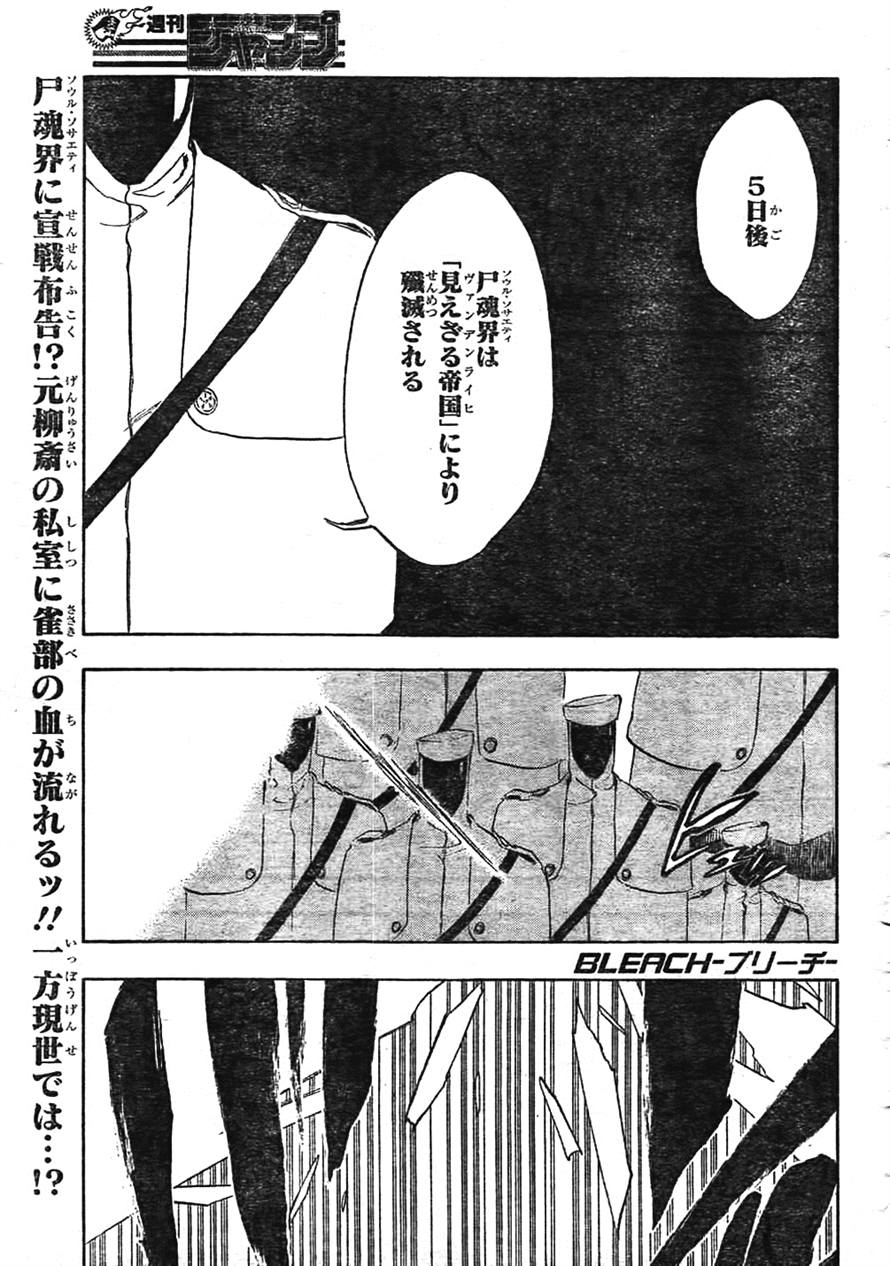 Bleach 484 – The Buckbeard. Kubo comincia a rivelarci cosa sta succedendo… e devo dire che la cosa mi preoccupa non poco. Iniziamo dall’ultima immagine: l’Imperatore? Quello è il fantomatico Re della Soul Society, o qualcun altro? Che senso avrebbe la distruzione della Seiretei da parte di colui che la governa? Eppure, per come la vedo io, se i 7 inviati da Yama-ji sono in grado di sparire dalla Soul Society senza bisogno di “portali” o altro e possono addirittura utilizzare il Bankai, l’unica possibilità è che facciano parte del corpo delle “Guardie” reali: e a questo punto viene da pensare se Aizen non avesse un qualche motivo recondito per voler creare la Chiave del Re e andare a fare fuori l’Imperatore! D’altra parte, il fatto che i messaggeri si presentino con delle maschere e nessuno di loro, a parte quello che vediamo a fine capitolo (e che secondo me assomiglia a Ginjou!) parli con il vecchio Yamamoto, fa pensare che stiano celando la loro identità in quanto, probabilmente, il capo del Gotei 13 gli conosce. Un’ulteriore questione, a questo punto, sorge riguardo alla presenza di Ivan (che, a questo punto, dobbiamo classificare come Quincy) tra le fila di questa allegra brigata: se tutti i Quincy sono stati fatti fuori, come fa uno di essi ad essere membro delle “Guardie” o, se non altro, un loro sottoposto? Infine, una curiosità relativa all’ombra (che, se non vado errato, non solo salva Ivan, ma porta via pure i 7 mascherati): che sia l’ombra del Re? Oppure è un qualche altro personaggio dotato di strani poteri che ancora dobbiamo conoscere? Finalmente Kubo è tornato agli intrighi e ingarbugliamenti di un tempo: spero solo che non concluda troppo velocemente questa saga e che, anzi, oltre a darci tutte le dovute spiegazioni ci faccia assistere ad un numero notevole di scontri, se non altro per poter finalmente vedere in azione tutti i Bankai dei nostri eroi! Una nota riguardo il termine “Vandenreich” usato dai mascherati: sembra il miscuglio tra un termine tedesco (“reich=impero”) e una tipica preposizione introduttiva olandese (“Van den=di, del”). Possibile quindi che i messaggeri facciano effettivamente parte dell’Esercito speciale del Re della Soul Society.
