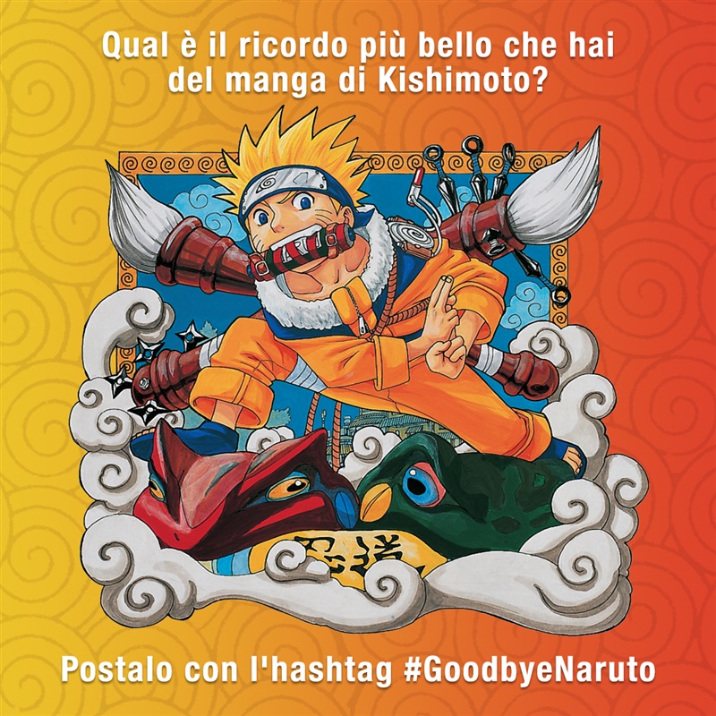 Inoltre, per dare la possibilità a chiunque di esprimere la propria creatività e di salutare Naruto e i personaggi della serie, è stato lanciato l’hashtag #goodbyenaruto, attraverso il quale i fan del manga e della serie animata potranno condividere la propria passione per l’opera di Kishimoto realizzando e condividendo qualunque contenuto, da foto di cosplay, a disegni, gif animate, video, banner, parodie, fumetti e quant’altro. Il talento non è importante, quello che conta è la volontà di salutare e omaggiare, scherzosamente o più seriamente, una serie che ci ha accompagnato per così tanti anni.