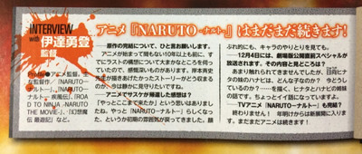 L’intervista, inoltre, dar� conferma che la serie d’animazione di Naruto continuer� e che ci saranno dei nuovi sviluppi a partire dall’inizio del 2015.