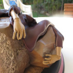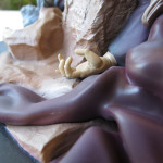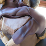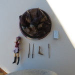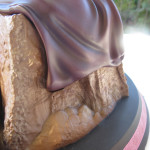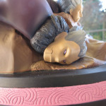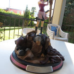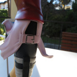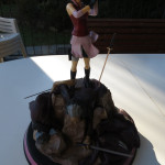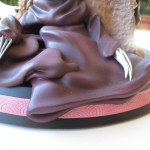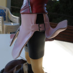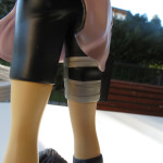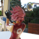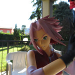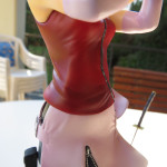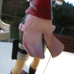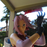 Base: la basetta espositiva rappresenta senz’altro il punto forte della rappresentazione nel suo insieme. La struttura è molto pesante, circa due chilogrammi e mezzo, e dona grande stabilità ma non per questo crea un disegno statico: le marionette abbattute da Sakura danno l’impressione di una violenta battaglia ancora in corso, giunta al suo apice. Lo sculpting delle rocce è pseudo-realistico in pieno stile Kishimoto e le marionette pur nella loro semplicità sono scolpite magnificamente nel volto e negli indumendi morbidamente adagiati sul terreno. L’accoppiamento con la figure di Sakura avviene nel migliore dei modi: essa si inserisce facilmente e mediante un magnete non è necessario premere troppo, soluzione raffinata quella adottata da Tsume. Il braccio di una marionetta (il quale presenta un problema, risolto, che vi illustrerò alla fine) completa l’intera statua assieme a tre spade, una posizionabile in un’alloggiamento apposito, le altre due a piacere. La colorazione è come tutte le statue di Tsume su Naruto piuttosto basica e fedele al fumetto, con poco shading e dettagli misurati ma presenti in ogni pezzo da loro scolpito.