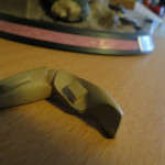Difetto: il problema cui vi accennavo poco fa è legat al braccio della marionetta. Se avete visto attentamente esso non entrava perfettamente nel suo alloggio. Ho risolto personalmente il problema limando leggermente, con una limetta da unghie, circa un millimetro nei due punti che potete osservare in foto ed ora l’assemblaggio è perfetto.