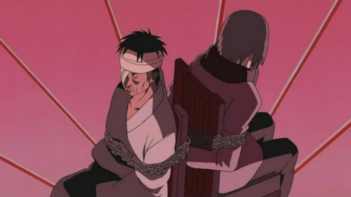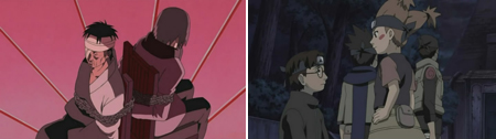 Riassunto. Gli ANBU riescono a catturare Danzou per interrogarlo: egli doveva incontrare un ninja infiltrato nel Villaggio della Pioggia che in realtà stava raccogliendo informazioni su Danzou stesso per i due consiglieri. Questi propongono a Tsunade di eliminare Sora, in quanto potenziale pericolo per il villaggio, mentre egli viene sorpreso a spiare e coglie l’ occasione per chiedere ad Asuma se ha ucciso suo padre. Alla risposta affermativa del jonin, Sora si scatena, mostrando un’ incredibile forza, e viene fermato da Naruto, che viene colpito per proteggere Sora, e sviene.