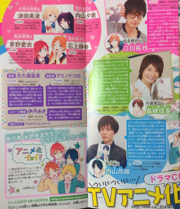 Martedì di questa settimana, il numero di Settembre della rivista Bessatsu Margaret edita dalla Shueisha ha annunciato che il manga Nijiiro Days (Giorni arcobaleno) di Minami Mizuno sarà trasposto in una serie televisiva d’animazione. L’anime presenterà lo stesso cast dei drama CD che sono stati prodotti precedentemente e vedrà Takuya Eguchi (Takeo Gōda in My Love Story!!) nei panni di Tomoya Matsunaga, Nobunaga Shimazaki (Haruka Nanase in Free!) in quelli di Keiichi Katakura, Kouki Uchiyama (Raku Ichijō in Nisekoi) in quelli di Tsuyoshi Naoe, Yoshitsugu Matsuoka (Kirito in Sword Art Online) in quelli di Natsuki Hashiba, Minami Tsuda (Yui Funami in Yuruyuri – Happy Go Lily) in quelli di Anna Kobaya, Yumi Uchiyama (Arata Sagimori in Saki Episode of Side A) in quelli di Mari Tsutsui, Ai Kayano (Menma in anohana) in quelli di Nozomi Matsunaga e Shizuka Ishigami (Akira Shiodome in A Lull in the Sea) in quelli di Yukiko Asai.