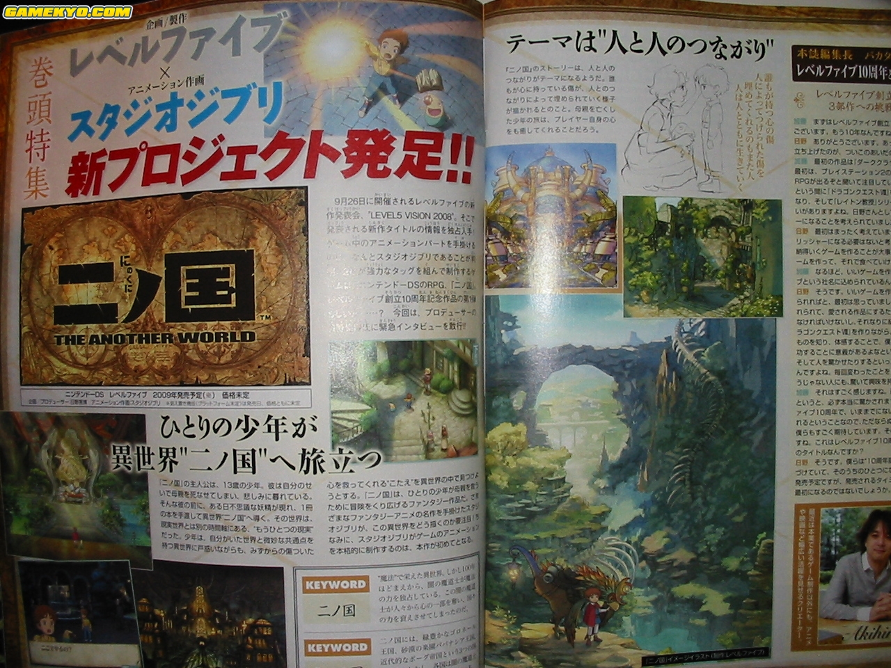 La rivista giapponese Famitsu ha confermato che Studio Ghibli si occuperà di tutte le animazioni del gioco. Il gioco verrà venduto con una sorta di libro di incantesimi come quello visibile nelle immagini qui sotto ed in dotazione al personaggio principale e conterrà le informazioni da utilizzare durante l’avventura. Il titolo verrà sviluppato anche per altre console ma non si sono decise ancora le piattaforme.