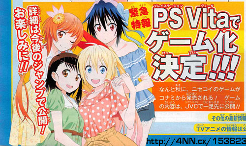 Lunedì di questa settimana, il venticinquesimo numero della rivista Weekly Shonen Jump edita dalla Shueisha ha fatto sapere che un videogioco per PS Vita tratto dal manga Nisekoi: False Love di Naoshi Komi uscirà in Giappone nel corso dell’autunno di quest’anno. Ulteriori dettagli saranno svelati sui prossimi numero di Weekly Shonen Jump.