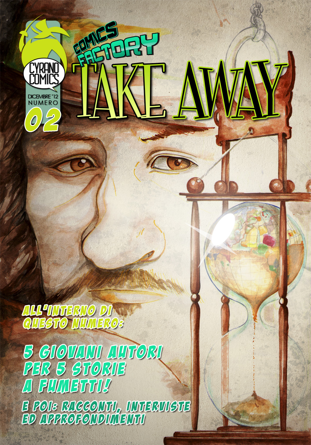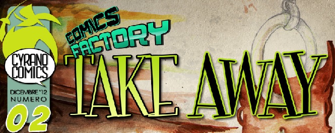 Da qualche giorno (dal 13 dicembre per l’esattezza) la casa editrice Cyrano Comics, con cui abbiamo il piacere di collaborare, ha deciso di fare un regalo di Natale anticipato ai suoi lettori. Si tratta del nuovo Take Away, una raccolta di storie a fumetti, scritte e inchiostrate da diversi autori, che la casa veronese propone ai suoi lettori per mostrare loro nuovi fumetti e nuovi fumettisti.