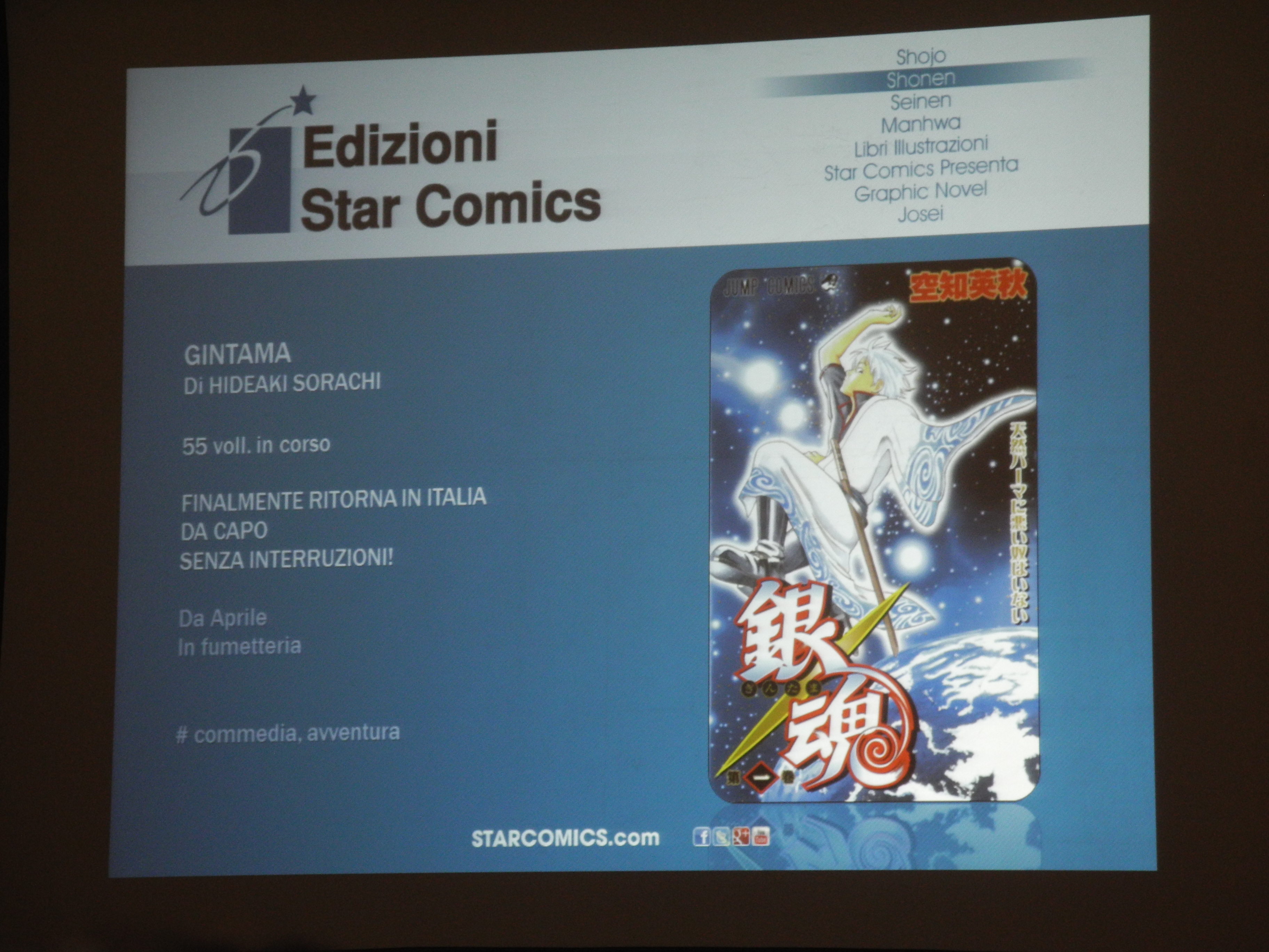 Ci� che ha fatto veramente notizia, e ha sollevato un boato all�interno della chiesa in era tenuta la conferenza, � stato l�annuncio di ristampa completo di Gintama. Un titolo che non ha bisogno di presentazioni. Un�impresa non da poco (55 volumi in corso) con una prima uscita doppia: ad Aprile, quando inizier� la serializzazione, usciranno in contemporanea i primi due volumi. Cos� da far contenti tutti.