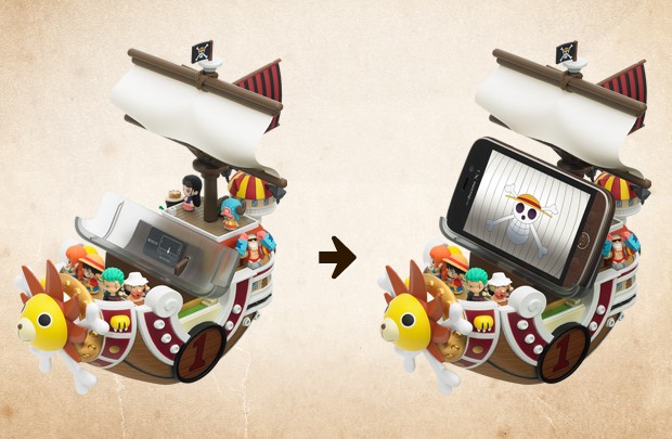 NTT Docomo è la principale azienda telefonica giapponese e spesso crea smartphone in edizione limitata. Questa volta si è fatta coinvolgere dal fumetto di Eichiro Oda ed ha creato questo splendido smartphone Android. E, visto che ormai sta arrivando il lungometraggio “One Piece Film Z”, che uscirà nelle sale il prossimo 15 dicembre e che celebrerà il quindicesimo anniversario del manga One Piece, NTT Docomo ha pensato bene di regalare ai suoi fans questa edizione speciale. Il telefono verrà venduto in sole 50mila copie e sarà interamente dedicato a One Piece. Quindi non sarà a marchio One Piece solo la parte esterna del telefono, ma anche applicazioni e giochi all’interno di esso. C’è un accessorio che di sicuro farà gola a molti e che, secondo me, varrebbe l’acquisto di questo smartphone. L’accessorio in questione è la base di ricarica a forma di Thousand Sunny. In questa dock si potrà inserire lo smartphone che sostituirà una delle vele della nave.