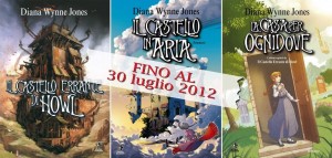 La seconda offerta è la trilogia completa dei romanzi de Il Castello Errante di Howl, che hanno ispirato l’opera di animazione di Hayao Miyazaki. Potrete ricevere i tre libri a 38 euro anzichè 45, ma l’offerta è valida solo per i primi 10 che invieranno la richiesta. Il Castello Errante di Howl, Il Castello in Aria e La Casa in Aria completano l’arco di storie che coinvolgono Howl, Sophie, Calcifer e tanti altri personaggi ambientate nel lontano e bizzarro paese di Ingary.