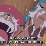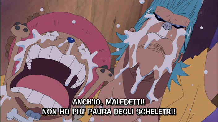 L’episodio si conclude con la decisione di Rufy di fare entrare “Ossa” nella sua ciurma ed il desiderio di radere al suolo Thriller Bark per riprendersi tutto.