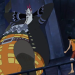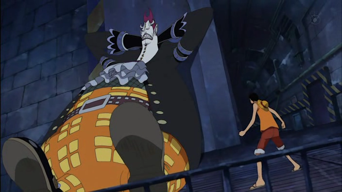 Riassunto. Rufy, ripresosi dall’attacco dei Negative Hollow, Robin e Chopper si dirigono verso la Dance Hall. Una volta arrivati, incontrano Hogback e Cindry, che tentano di fermare Rufy dall’andare nella Cella Frigorifera, dov’è Moria. Cappello di paglia riesce a procedere grazie a Robin e Chopper, che rimangono lì per combattere il duo. Sul ponte Oz sembra voler attaccare i nostri,ma in realtà vuole solamente prendere una maceria per farsi il cappello da pirata (la personalità di Rufy continua a “possederlo”).