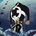 Bartholomew contrattacca usando lo strano attacco di prima, con il quale ha steso 4 dei Rolling Pirates senza toccarli, e Zoro, seppur venga solo sfiorato, avverte il colpo come se fosse stato colpito in pieno.