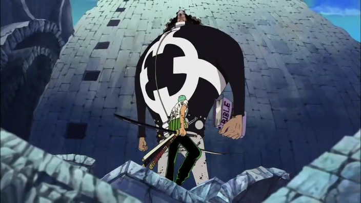 Riassunto: Zoro non rifiuta la sfida contro Orso, sebbene sia ridotto malissimo, e prova ad usare una delle sue mosse più forti subito, ma Il Tiranno la evita agilmente.