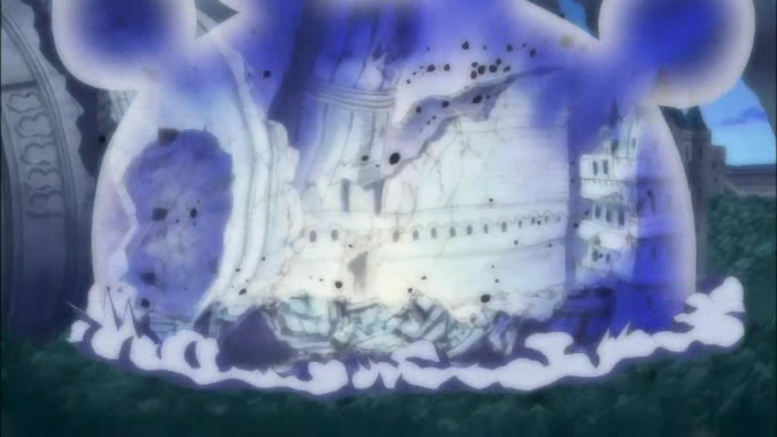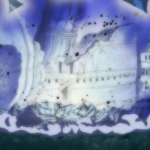 Pian piano la rimpicciolisce: così facendo aumenta la pressione interna alla bolla, creando una vera e propria bomba. Orso fa un’offerta ai pirati: gli risparmierà tutti se gli consegneranno Cappello Di Paglia. Tutti rifiutano e il Tiranno rilascia la bomba, la cui potenza si abbatte senza pietà su tutta Thriller Bark….