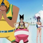 Non scenderò in particolari, vista la natura dell’episodio (appunto filler), vi basti sapere che assisteremo al ritorno e relativo bastonamento di Foxy, la Volpe Argentata, alla ricerca del diario posseduto da Lina, una ragazzina che i Mugiwara incontrano al resort, diario che dovrebbe contenere le informazioni necessarie per creare una Gemma. (Cosa sia la Gemma non lo sa nessuno,comunque…)