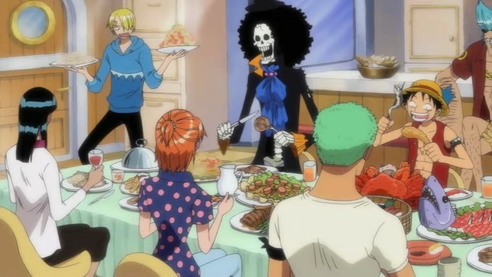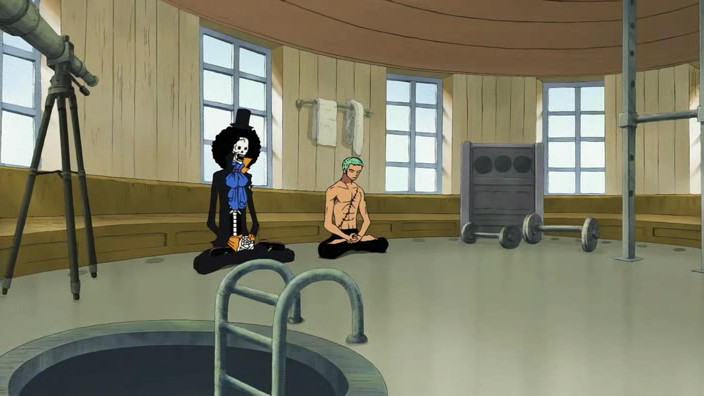 Riassunto: Dopo la piccola parentesi dell’isola SPA, abbiamo un filler in cui Brook cerca di darsi da fare, per non sfigurare con i suoi nuovi compagni e per paura non di essere al pari della loro fama.
