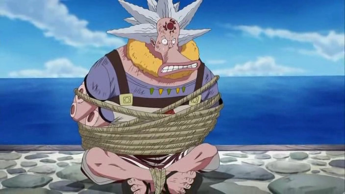 Ovviamente la ciurma non vuole salvare un vecchio nemico, soprattutto a Nami. Caimie e Pappag si vedono costretti a salvarlo di persona, ma vengono come al solito catturati dalla gang di Macro con una facilità disarmante.