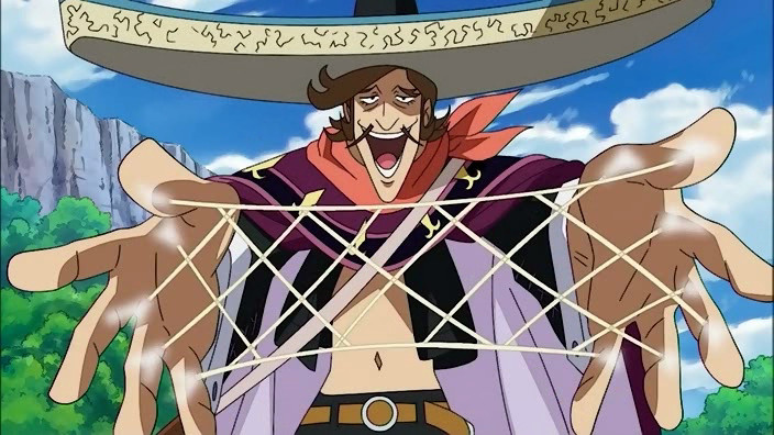 Riassunto: per entrare nella fratellanza dei pirati di Shiki, il Leone Dorato, i fratelli Amigo hanno il compito di catturare Boss, il coleottero che da sempre protegge l’isola di Little East Blue. La ciurma di Rufy naturalmente si oppone alla violenza e alla prepotenza di questi fratelli, ma il maggiore dei due possiede i poteri di un Frutto del Diavolo, il Rete Rete, che gli permette di creare reti di qualunque materiale egli ingerisca. Con questa tecnica, Rufy Zoro e Sanji vengono catturati ed appesi ad un albero, incapaci di muoversi.