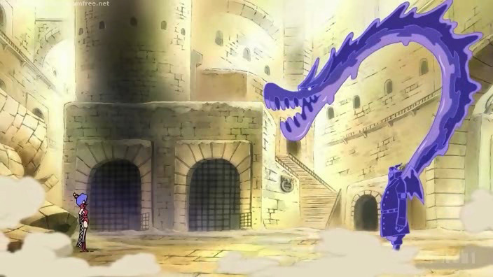 Mr 3 decide, coraggiosamente, di affrontare Magellan con i poteri del suo Frutto Dela Dela. La sua cera, solidificata, è resistente quanto l’acciaio, ed è l’arma più efficace contro il veleno di Magellan. Rufy, impressionato dall’efficacia della cera, decide di affiancarsi al nuovo alleato e creare una nuova arma, in grado di ferire il direttore: il Rufy Candle Arm!