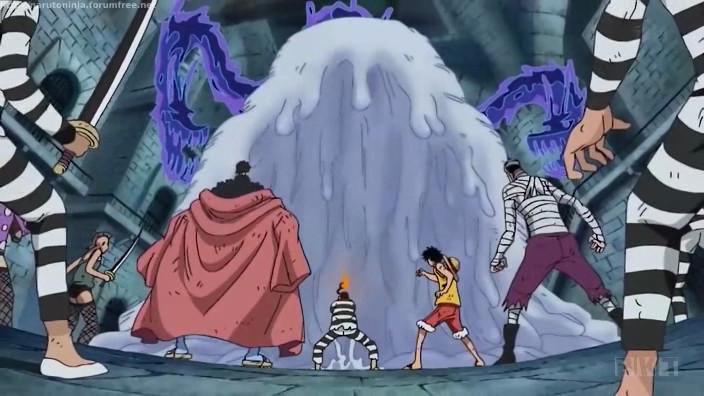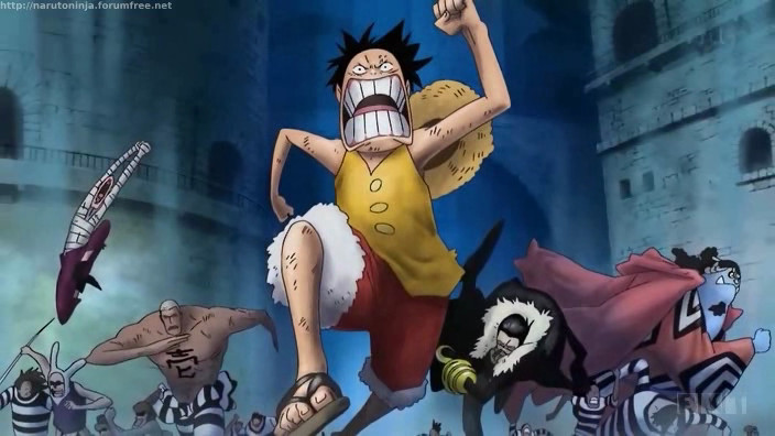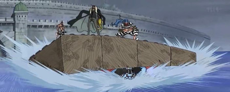 Buggy, Crocodile, Mr1 e Jimbe intanto raggiungono l’aria aperta, le porte dell’inferno si spalancano finalmente e prigionieri vedono la tanto agognata luce del giorno. Assaltare una nave della Marina è ora l’unica soluzione possibile per scappare da Impel Down!