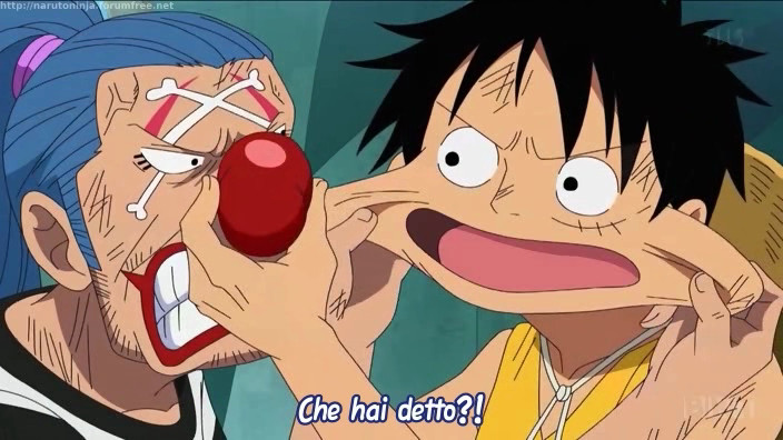 L’attenzione sulla nave è catalizzata da Buggy il Clown: non solo la Marina gli ha attribuito, insieme a Rufy, tutta la colpa della maxi evasione di Impel Down, ma si scopre anche che un tempio fu membro della ciurma del Re Dei Pirati Gol D. Roger, fratello d’armi del Grande Shanks! Una celebrità insomma, che è rimasta nascosta per tutti questi anni!