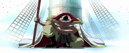 Ma Barbabianca dimostra a tutti quanto un padre possa amare un figlio, perdonandogli la sua stupidità. Per Barbabianca è giunto il momento di cambiare al meglio le sorti della battaglia, prendendovi parte attivamente. La Marina si prepara ad affrontare in campo l’uomo più forte al mondo!