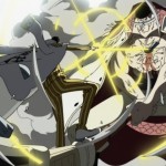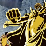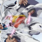 Riassunto: dopo che Inazuma era riuscito a creare una pedana fino al patibolo, grazie ai poteri del suo frutto, Rufy si appresta a salire per raggiungere il fratello, ma fra i due si frappone l’eroe della Marina, il loro nonno, Monkey D. Garp!