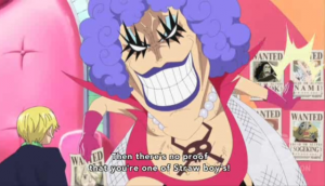 Sanji si trova nel regno di Kamabakka, l’isola rosa popolata da leggiadre fanciulle, almeno dentro… In realtà quest’isola è la patria dei travestiti, dove non esiste né il sesso maschile, ne quello femminile ed ora il regino di questo posto è tornato: Emporio Ivankov torna a casa! Qui incontra Sanji che gli chiede disperatamente una barca per poter tornare a Sabaody. Ma Iva ancora non si fida completamente di lui…