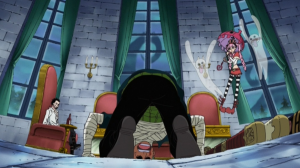 Riassunto: la notizia continua a viaggiare per la Rotta Maggiore e i Quattro Mari … I restanti quattro Mugiwara decidono cosa fare … Brook, dopo essere stato catturato dalla tribù Braccialunghe, viene esposto in una gabbia come fenomeno da baraccone. La tribù Braccialunghe non solo si stupisce del fatto che abbia una sola articolazione per braccio, ma che non abbia nemmeno un brandello di pelle. Brook è uno scheletro solo ossa, che si muove e fa strane azioni! Brook decide che migliorerà se stesso e diventerà più forte per il suo capitano. Non solo riuscirà ad inclinarsi fino a 40 gradi, ma comporrà nuove canzoni … Nico Robin sta partendo da Tequila Wolf per raggiungere la base segreta di dragon, capo dell’armata rivoluzionaria nonché padre di Rufy. I rivoluzionari la cercavano per proteggerla da molti anni, ma Robin è comunque contenta di non averli mai trovati, altrimenti non si sarebbe incrociata con la ciurma di Rufy, l’unico gruppo nel quale lei si sia mai sentita felice. Per la prima volta in vita sua lei non si impegnerà a diventare più forte per se stessa, ma per qualcun altro! Anche Usop è intenzionato a diventare più forte e l’arcipelago Boeing è il luogo adatto al suo scopo. Ogni giorno lì è una lotta per la sopravvivenza! Usop deve innanzitutto perdere tutti i chili accumulati nel suo periodo di rimanenza lì e poi aumentare la sua massa muscolare. Heracles sarà il maestro ideale per lui. Zoro intanto fa qualcosa che lascia Mihawk sbigottito: Zoro decide di mettere da parte le sue ambizioni pur di diventare più forte. Per questo motivo si prostra dinanzi al miglior spadaccino al mondo affinchè gli insegni la via della spada. Mihawk coglie subito il lato ridicolo della vicenda, cioè dovrebbe allenare l’uomo che un giorno gli staccherà la testa ma alla fine accetta, persuaso dalla volontà di Roronoa… Tutta la ciurma ha infine recepito il messaggio: la ciurma di Cappello di Paglia posticiperà la sua riunione di due anni! NB. Questa è la penultima puntata di quella che può essere considerata la prima serie di One Piece. Domenica 2 Ottobre inizierà quindi la nuova serie ambientata due anni dopo gli eventi correnti. Ci sarà anche una nuova sigla, We Go! Inutile dire che sarà un gran evento !