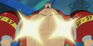 La Sunny si ritrova immersa nell’oscurità, poiché a quelle profondità non arrivano i raggi del sole, e all’appello mancano Rufy, Zoro e Sanji, dispersi non si sa dove all’interno delle loro bolle. Non si contano le temibili creature che popolano quelle profondità marine: creature cieche ma comunque pericolosissime che mettono in difficoltà i Mugiwara. Caribo, ancora prigioniero a bordo della nave, approfitta della situazione per nascondersi ma viene subito trovato da Franky che lo sigilla all’interno di una botte.