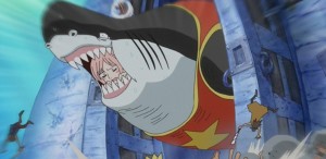 Riassunto: Rufy si allontana dal resto del gruppo, che si trova nella sala del trono in balia dei soldati reali, e si imbatte nella torre conchiglia dove è rinchiusa la principessa Shirahoshi. La principessa sirena sembra aver preso le proporzioni del padre: è una sirenetta dalle dimensioni mastodontiche. Tuttavia è notevolmente impaurita da tutto ciò che la circonda: da dieci è vittima di molestie di parte di Van Der Decken che è deciso a sposarla ma, se lei non ricambierà il suo amore, allora morirà per mezzo delle sue asce lanciate che egli lancia contro di lei tramite i poteri del suo frutto del diavolo, che gli consentono di lanciare e qualsiasi oggetto, a qualsiasi distanza, colpendo una determinata persona.