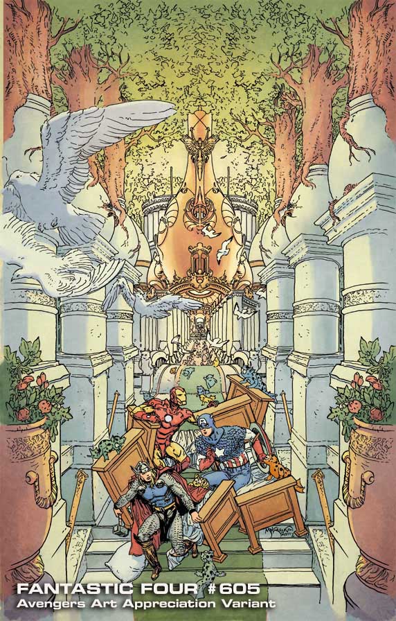 Ne abbiamo già parlato del film dei Vendicatori diretto da Joss Whedon in uscita ad aprile. La Marvel ovviamente vi punta moltissimo e lo si può capire dalle continue pubblicità che possiamo trovare un po’ ovunque (non voglio immaginare in USA). Uno dei metodi ormai “classici” è sfornare variant cover per i suoi albi col tema che voglio appunto sottolineare. Per l’uscita di Captain America oltre a vedere il buon soldato a stelle e strisce su tante serie si potevano ammirare personaggi riportanti i suoi simboli e colori. In questo caso hanno puntato sul ricreare opere famose ma con Capitan America e soci. I fans potranno vedere gli Eroi più potenti della Terra negli stili dei più famosi artisti del Mondo, come Rembrandt, Michelangelo, Monet, Pollock, Schielle e molti altri, realizzate da disegnatori di grosso calibro dallo stile particolare. Per quanto mi riguarda il risultato è estremamente piacevole ed alcune sono veramente notevoli!