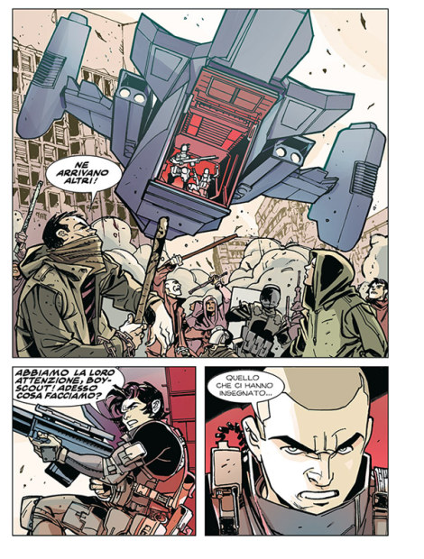 E sopratutto da Jonas, quel Boyscout che inizialmente vuole aiutare il proprio compagno, ma che viene richiamato all’ordine da Nakamura. E davanti ad un ordine, Jonas non si può tirare indietro. In fondo è questa la differenza tra il Boyscout ed il Pistolero: il primo è un soldato, il secondo un guerriero. Il primo esegue gli ordini, il secondo combatte per quello che ritiene giusto. E’ lo stesso Nakamura (chi meglio di lui) a spiegarlo alla Juric ed ai lettori.