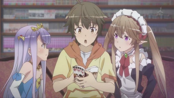 Entrambi questi anime mi stanno piacendo… fin’ora sono usciti tre episodi di NouCome e quattro di Outbreak (non sono ancora riuscito a vedere il quarto, comunque), e sebbene siano entrambi dello stesso genere, con elementi harem, moe, sovrannaturali e umoristici, hanno comunque alcune caratteristiche che li differenziano l’un l’altro. Innanzitutto, in Outbreak c’è il personaggio di Myousel.. una maid mezzelfa, quanto può essere geniale quest’idea!? Questo personaggio, come attrattiva, è in grado di spazzare via tutti gli altri del suo anime e competere con quelli di NouCome poichè al momento questo anime si è focalizzato solamente sulla “kuudere” Yukihira. Anche il modo in cui fanno ridere le due serie è differente: Outbreak ammicca chiaramente alla cultura otaku, riempiendo gli episodi con riferimenti ad altri manga ed anime di successo, come l’oramai noterrimo Shingeki no Kyojin, di cui compaiono addirittura delle inconfondibili pagine del manga (il manga, non l’anime! Outbreak non si preoccupa dei diritti di copyright perchè fa pubblicità indiretta a un altro prodotto Kodansha), per non parlare delle decine di riferimenti ad altri titoli più o meno noti che fanno la loro sfilata, a volte come manga, altre come anime, altre volte come action figures. Diventa, per gli appassionati come il sottoscritto, un’attesa della prossima citazione o una gara con se stessi, per dimostrare che “le conosciamo tutte”; ma per lo spettatore occasionale (ammesso che uno spettatore occasionale decida di guardare anime del genere) appaiono indubbiamente come tanti elementi inutili. NouCome invece gioca sull’assurdità delle situazioni in cui il protagonista si ritroverà coinvolto, e per ora il ritmo è decisamente buono perchè gli episodi sono una successione di eventi senza necessariamente un filo conduttore che, se strappano una risata, lo fanno per la mole di dettagli che arricchiscono la scena. Basti pensare al motivetto che risuona dal cellulare del protagonista quando Dio lo chiama per la prima volta (il quarto Movimento della Sinfonia del Nuovo Mondo… tutti l’abbiamo sentita almeno una volta nella vita)… e tanti altri elementi messi a caso, sparati nello schermo a una rapidità tale che mandano in tilt il cervello, che si arrende nel suo tentativo di “comprendere tutto“, e si diverte.