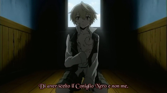 Riassunto. E’ solo una mocciosa… Que tipo di ragazze, non dovrebbero essere mai nate! E con le parole del coniglio bianco si era chiuso l’episodio precedente. Al risveglio Oz e Alice si trovano nella casa di Raven dove viene a fare visita loro Blake, che porta con sè notizie assai inquietanti. Finalmente deciso a riverlare la verità (almeno così sembra, ma non ci giurerei) spiega ad Oz che l’Abisso, origine dei Chain, è dotato di una Volontà.