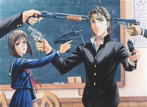 Battle Royale nasce infatti come romanzo nel 1999 e il suo straordinario successo gli vale la realizzazione ben due serie manga e due film live-action. Dal romanzo lo stesso Takami ha supervisionato la sceneggiatura di un adattamento manga serializzato dal 2000 al 2006 ripercorrendo abbastanza fedelmente il romanzo originale. L’opera si è conclusa con il quindicesimo volume ed è edita qui in Italia da Planet Manga che ne sta pubblicando una ristampa bimestrale arrivata ormai all’undicesimo volume.