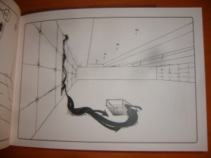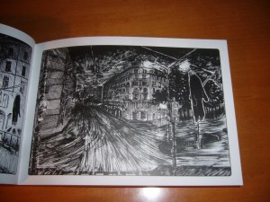 Sapevo già, in qualche misura, cosa aspettarmi dal punto di vista dello stile: il video della canzone, targata Uochi Toki, “Il Ladro”, oltre che per testo e voce, portava la firma di Napo\Lapis anche per il video realizzato con le tavole di quest’ultimo. Sono rimasto sorpreso, ad ogni modo. Poche barcollanti linee nere tentano di incontrarsi in immense tavole bianche, per poi lasciar spazio ad ampie campiture di inchiostro nero che avvolgono l’occhio. L’equilibrio è precario: passiamo da una buia Milano di superficie ad una luminosa metropolitana sotterranea ed a luoghi improbabili avvolti nella luce.