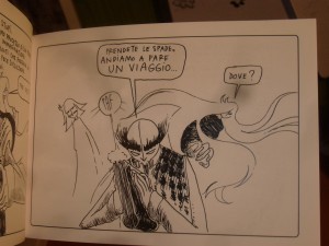 Siamo sul Piano Immaginario, un mondo parallelo al nostro situato nella mente di un autore, disegnatore o di noi lettori, che funziona alla velocità del pensiero (quando il nostro Piano Reale funziona alla velocità delle azioni). Le persone che vi vivono sono si carne e sangue, le leggi fisiche (sebbene differenti) esistono … come anche l’emotività ed il pensiero. L’ho spiegato malissimo, sebbene abbia cercato di riportare le parole Claus. Costui c’introduce al P.I. ed è il protagonista del racconto anche se pretende di non esser trattato come tale in virtù di quanto detto prima. Comunque, Claus ha una missione che sembra essersi dato in autonomia. Non ve la svelerò ma proseguirò con esplicare la trama. Claus, sembra aver procurato un qualche danno e decide di rifugiarsi ove certi occhi non possono giungere. Inizia qui a svelarci la meccanica del Piano ed a raccontarci la storia di un personaggio vivente nel P.I. coinvolto nelle vicende che ci interessano. Il volume termina ad un turning point di questa “sotto-trama”. E tu sei lì, o meglio: io ero lì che bramavo in modo così profondo di sapere soltanto come si concludeva la vicenda di questo Gregorio Spadari pronto a dirigersi nella città di Venezia. Che poi … si tratta della Venezia del Piano Immaginario o Reale? I personaggi possono interagire col P.R.? Alcuni elementi nel corso del volume fanno supporre di sì, ma chi lo sa per certo!?