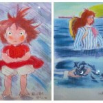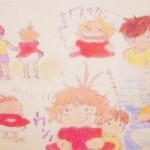 Non mi è difficile capire come le persone siano rimaste incantate davanti a queste immagini… i colori, l’azzurro del mare, il rosso vivo, i visetti rotondi di ponyo e sosuke, i pesci che nuotano sinuosi… Miyazaki sa sempre come creare qualcosa di magico, anche nella semplicità.