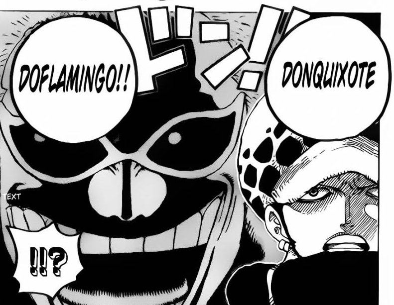 Un mistero che, sinceramente, non credevo sarebbe stato risolto così in fretta è stato conoscere dopo non molto tempo non solo l’identità di chi in questi anni ha coperto gli esperimenti di Caesar, ossia Vergo, ma anche l’identità del committente, ossia di Joker di cui parleremo tra un attimo. Riguardo a Vergo abbiamo già avuto un minimo accenno del suo background: pirata sotto il Jolly Roger di Doflamingo, prima di diventare famoso ha scelto di unirsi alla Marina, per agire come infiltrato di Doflamingo, ossia il Joker onepieceiano. Nel corso degli ultimi tre anni, in qualità di Vice Ammiraglio Comandante del G-5, è riuscito a copreire tutte le strane sparizioni nei pressi di Punk Hazard, nonché i rapimenti di tutti quei bambini. Conosce Law e sappiamo anche come l’ha atterrato facilmente; non sappiamo ancora quali siano le sue effettive abilità. Possiede un Frutto? Oppure ha solo usato l’haki dell’armatura, con gli stessi effetti grafici di Rufy? Per quanto riguarda quest’ultima domanda non credo che dovremo aspettare ancora molto.