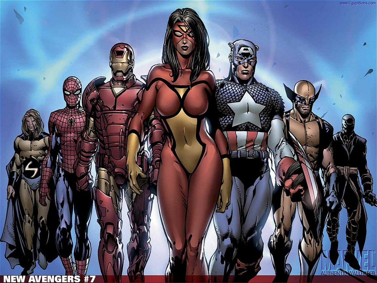 Escludendo Capitan America ed Iron Man(che assicuravano la continuità con il passato, e sopratutto giustificavano il nome Vendicatori) eravamo di fronte ad alcuni personaggi ‘di secondo piano’ della Marvel(di cui Bendis si era già occupato) come Luke Cage e la Donna Ragno (unica quota rosa del team per un pò di tempo), e sopratutto a due personaggi del calibro dell’Uomo Ragno e di Wolverine, cioè un eroe prettamente solitario ed uno affiliato ad un altro gruppo (almeno all’epoca). Qualcosa di diverso, di ‘nuovo’ appunto.