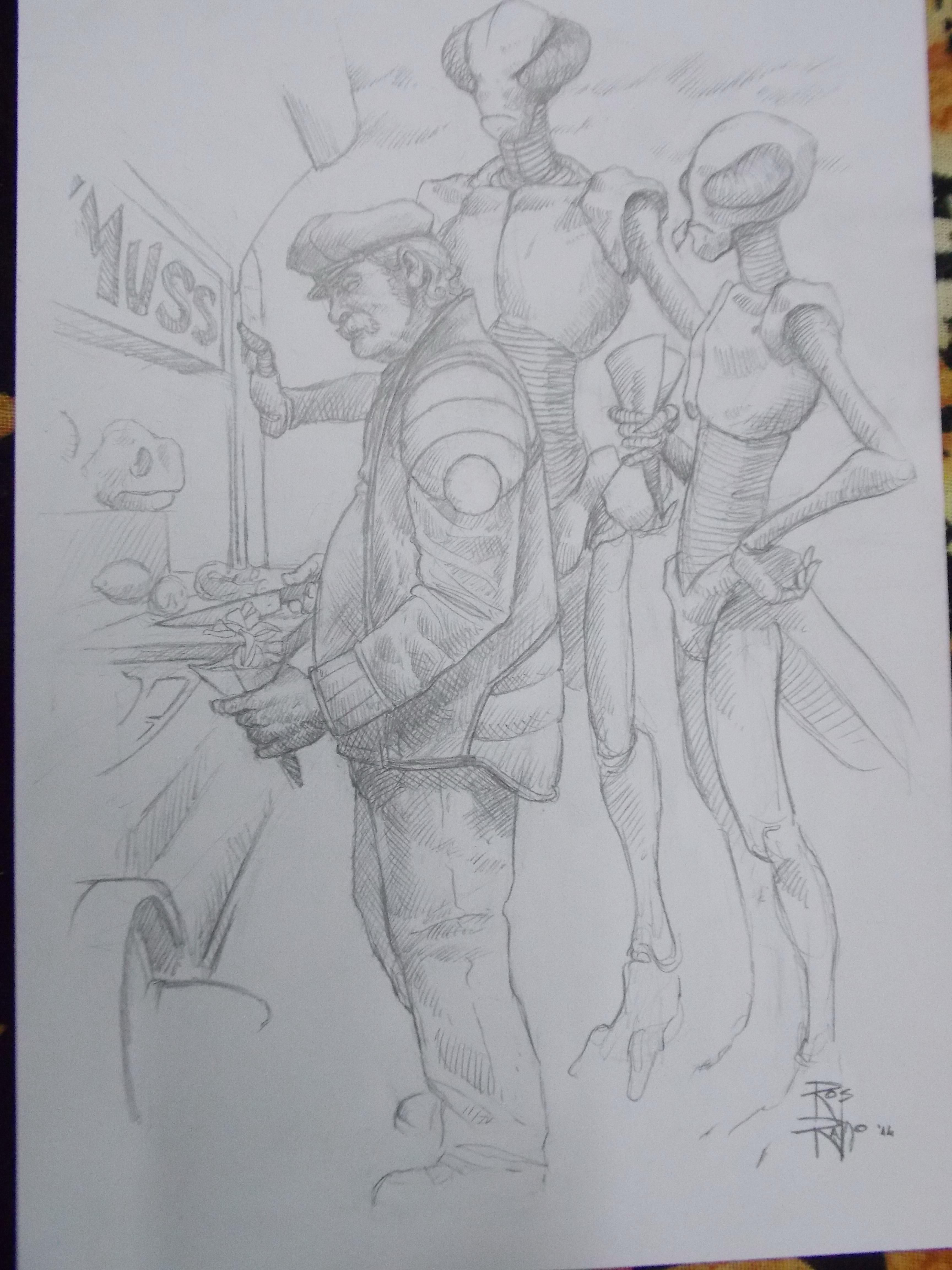 L’evento tenutosi sabato 17 maggio, nella cornice del “Comicstore” di Giulio Laurenzi, a Potenza, appartiene esattamente a questa seconda tipologia. La presentazione del libro “Il Racconticida …e altre storie”, raccolta di racconti di Walter De Stradis, direttore editoriale della rivista “Controsenso”, è stata l’occasione per permettere che le due muse della storia “scritta” e di quella “disegnata” si potessero incontrare, favorendo così la nascita di un connubio unico e irripetibile che ha dato una spinta “in più” alla presentazione dei 14+1 racconti presenti in questo libriccino che si legge e gusta come una bibita fresca in una giornata estiva. Alla presenza dei disegnatori Rosario Raho, Saverio Cabese, Egidio Marone, Roberto Dramis e Giulio Laurenzi, che ha anche officiato la presentazione del libro, l’autore ha raccontato “fatti e misfatti” dietro la realizzazione di questa opera, mentre gli esperti delle “matite” si sono esibiti, ciascuno, in una performance creativa per dare vita a singoli personaggi presenti in questa raccolta di “istantanee di eventi riportate su carta, più che veri e propri racconti”, come li ha definiti lo stesso De Stradis, disegni che hanno conferito alla piacevole serata un ritmo e un accompagnamento alla discussione quanto una perfetta colonna sonora ben orchestrata riesce a fare con le scene di un film.