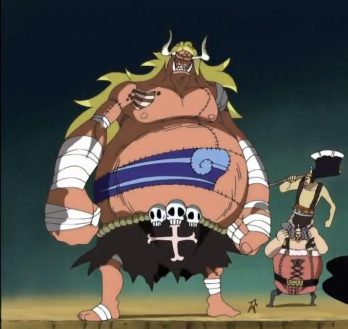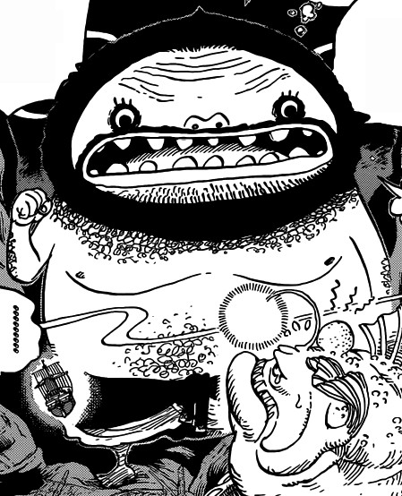 Fresco di comparsa è un esemplare di Ubimozu, Wadatsumi della ciurma dell’Olandese Volante. A dispetto delle altre razze, comuni anche alla cultura occidentale, l’Umibozu appartiene alla tradizione popolare giapponese: uno spirito che capovolge le navi che incontra, terrore dei marinai orientali quanto lo è il Kraken per quelli occidentali. In One Piece un ubimozu assume l’aspetto di un enorme gigante (ben più grande di Odr e Oars) che assomiglia molto ad un altro personaggio di One Piece, San Juan Wolf della ciurma di Barbanera. I due, oltre alle mastodontiche dimensioni, hanno in comune anche i tratti del volto, piuttosto deformati e rotondeggianti…