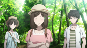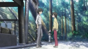 Parliamo di shoujo quindi, perchè sia dalle prime immagini, che dai nomi della breve introduzione, è facilmente comprensibile che tipo di lavoro stiamo per affrontare… ciò non toglie che i sei (degli otto) episodi che sono riuscito a vedere mi hanno convinto a presentarla tra le serie interessanti di questa stagione. Anche se questo giudizio non è stato maturato dopo la visione dei primi episodi, perchè l’anime, sebbene non molto lento possiede una fase “introduttiva” forse un pochino troppo lunga per essere un prodotto di cui sono stati annunciati dodici episodi. Nei primi episodi ci vengono presentati i due protagonisti, la giovane e insicura Izumiko Suzuhara, una quindicenne che ha vissuto tutta la sua vita in uno dei paradisi naturali del Giappone, il bellissimo Santuario Kumano, parte del Patrimonio dell’Umanità. Izumiko, molto timida, ha sempre avuto problemi a rivolgere la parola ad altre persone e quindi difficilmente faceva amicizia, anche per lo strano effetto che ha su strumenti elettronici: cellulari, computer, televisori… smettono di funzionare, spesso basta che li tocchi perchè si rompano.