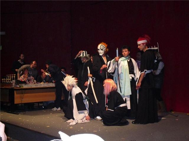 Alle 2.00 c’è stata la gara dei cosplayers vinta dai ragazzi di Bleach. Da notare il mito che s’è travestito da semplice soldato col punto esclamativo sulla testa, il bimbo di 6 anni che ha fatto la sua prima gara di cosplayers e quel pazzo travestito da sfera pokè!